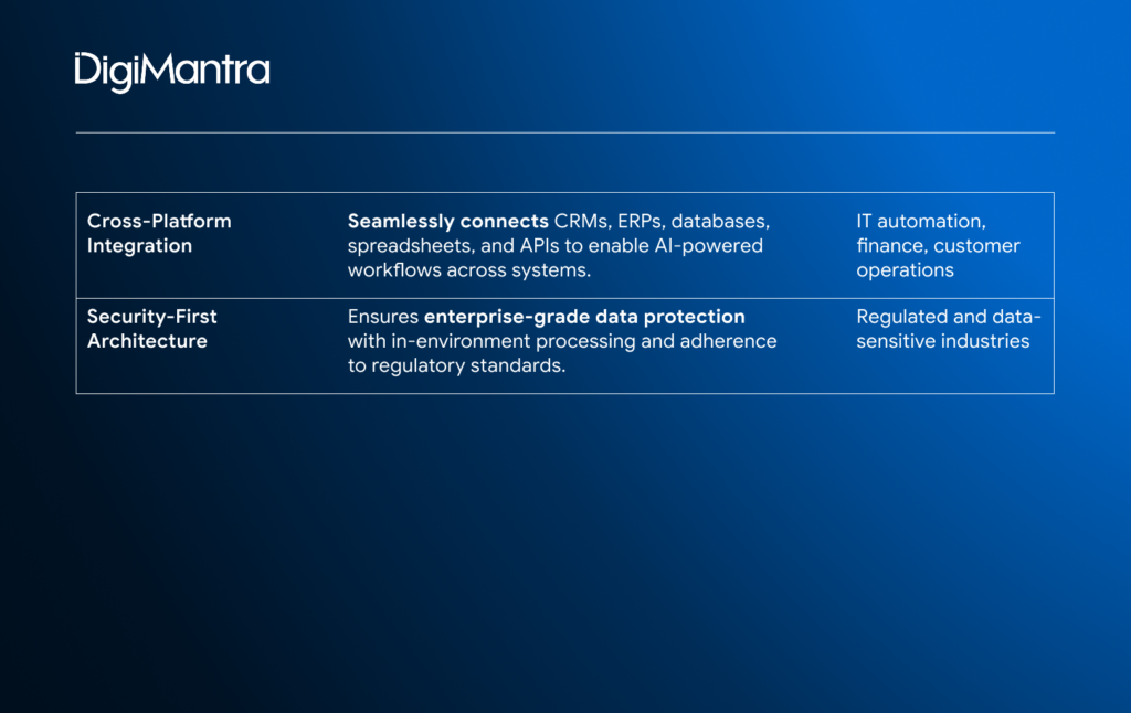 Generative AI for enterprise excels at combining data from multiple sources, structured and unstructured, to surface meaningful insights. By identifying trends and correlations, it helps enterprises uncover new opportunities, improve forecasting accuracy, and refine business strategies.