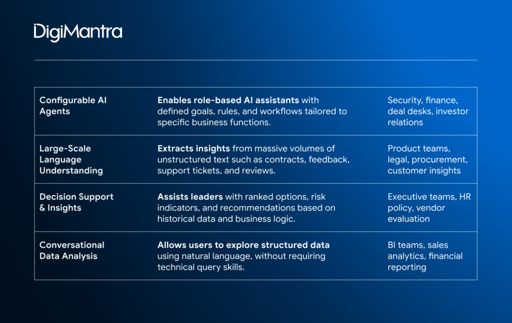Beyond content creation, generative AI is a transformative force in how businesses manage, interpret, and act on information. It empowers organizations to develop stronger strategies, improve operational efficiency, and make data-driven decisions.